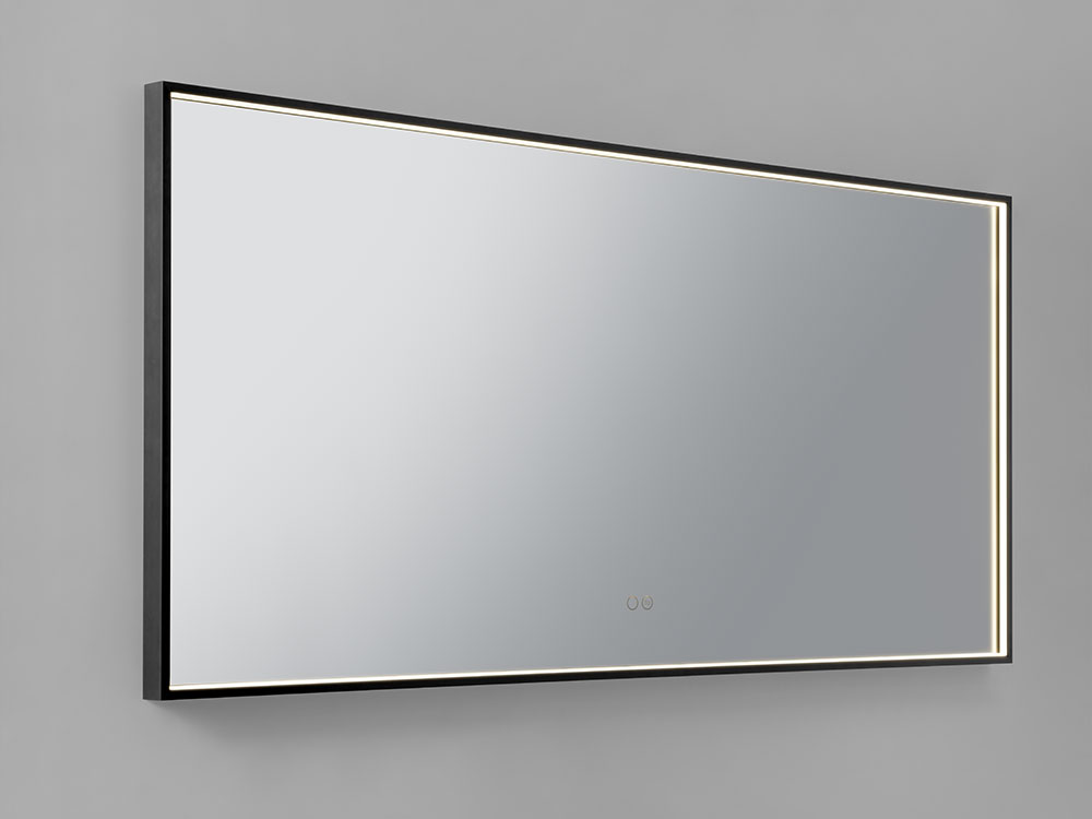 Mirror with front perimeter LED lighting, visible frame in